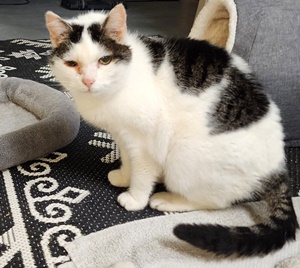 In 2017 I was staying at a hotel to attend my class reunion in the Sunbury area. Upon checkout, there was a kitten at the dumpster, covered in fleas and cuts and scratches. Vet thought she was about a year old and only 5 pounds. After her spay and much TLC, she grew to 10 pounds and the sweetest little girl ever-- in addition to beautiful!! She loved her big brother and always slept snuggled up with him or on top of me. I had 7 wonderful years with her until cancer ravaged her little body. I will miss her forever . See you at the bridge with all of your brothers and sisters!!! πππππππππ