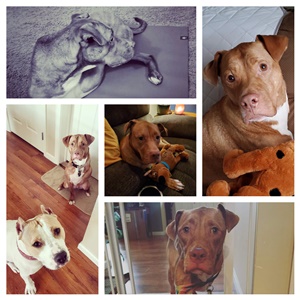 Sweetie was a 15 and a half year old pit bull. I adopted her from the ASPCA in Harrisburg when she was 4 yrs old. She was always a good dog with a bit of mischief built in. She loved a good walk and loved meeting new people. She never met a stranger and she never honored your personal space. She loved when you threw a blanket over her and she would walk around while wearing it. We had a good long life together and I will forever be missing a part of my heart. She is now pain free and waiting at the Rainbow bridge for me.