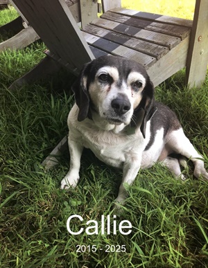 On August 8 (2025), we said goodbye to Callie, who came to us as a rescue, malnourished and with Lyme disease. She had lived her first three years in an outside box/crate, after a breeder/farmer had decided she did not make the grade as a hunting dog. To us she was a loving family member and friend to all, both human and canine. She even came to tolerate rabbits and squirrels. Cats…not so much. : ) We are deeply saddened by her passing and wish we could have done more for her, but we understand that a hard early life stacked the odds against her. We are eternally grateful for the seven years of a good life we were able to give her and the boundless love she gave us in return.